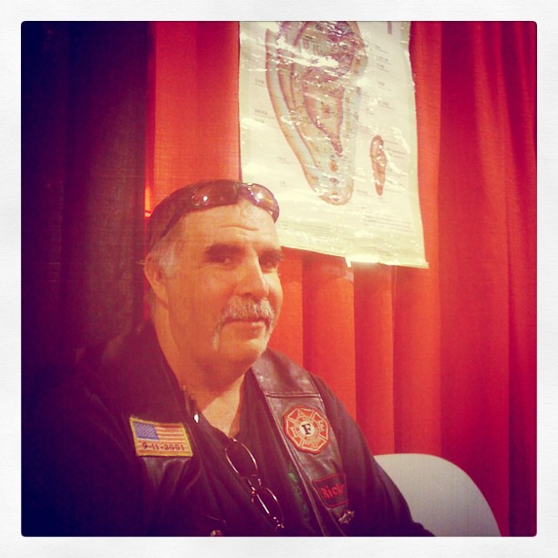 July 24, 2012 Caroline Ashurst Rick, firefighter from Portland, Maine. Tough guys get #acupuncture too! (Taken with Instagram)