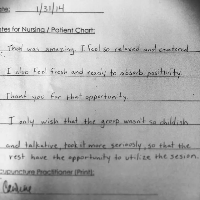 This is one of the ways i get nourished by this work. I have the honor of being witness to folks getting in touch with their deepest spaces, something they probably haven’t had the chance to do in some time. #nada #acupuncture #notesfromthesoul #acupuncturedetox (at Bowling Green Brandywine)